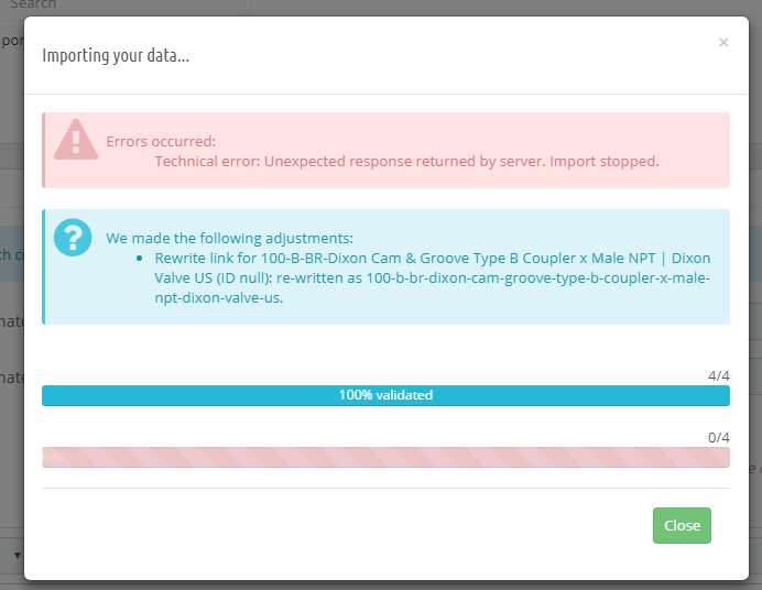 I'm stumped..   when importing a csv of products, i keep getting a technical error response after validation..  I can not find a log entry anywhere regarding this error, or where it occurs.  any advice?