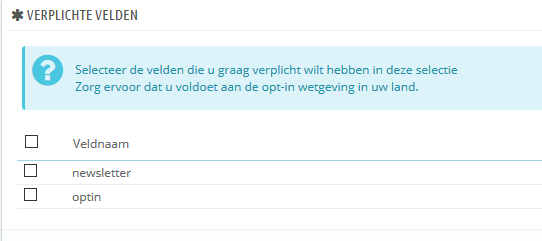 hbsys Posted December 18, 2017 Share Posted December 18, 2017 (edited) Verplichte velden in aanmeldformulier verwijderen. ik heb een probleem om een per abuis veld (other/overig = Aanvullende informatie ) verplicht te maken voor de registratie. gedaan via klant - beheer uw klanten en dan onderaan selecteer verplichte velden voor deze selectie. nu wil ik dit ongegaan maken maar de vraag is hoe doe je dat. prestashop 1.6.1.17. Edited December 18, 2017 by hbsys aanvulling (see edit history) Link to comment Share on other sites More sharing options...