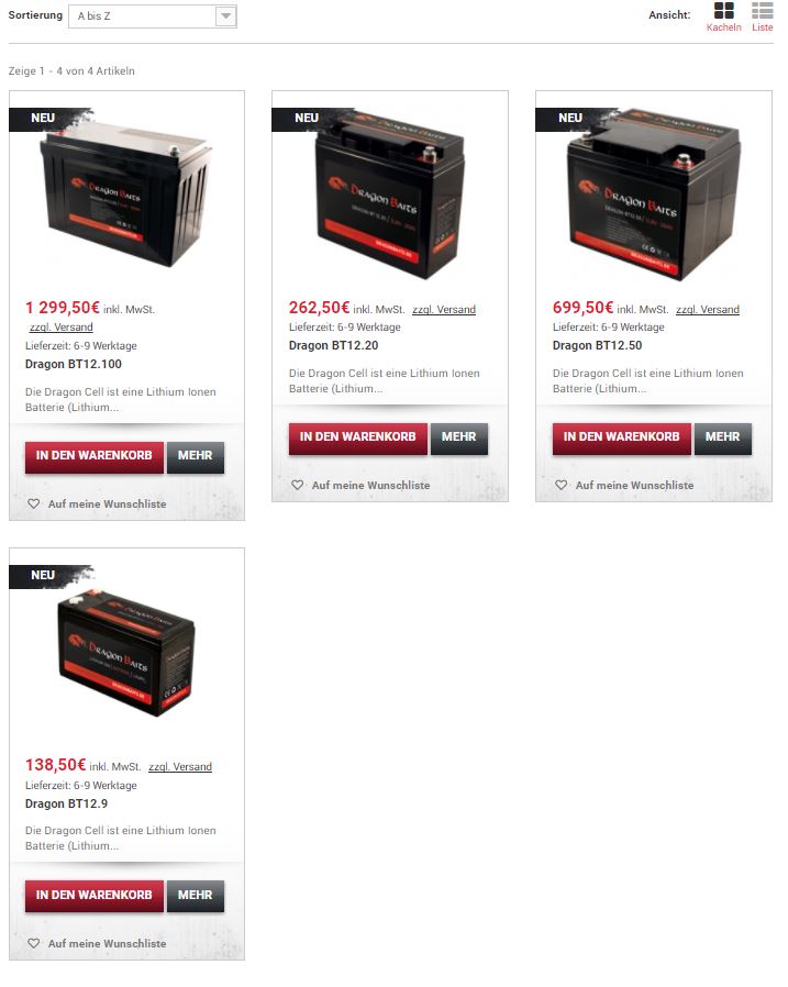 Vor einer Woche habe ich neue Produkte in unserem Shop angelegt.