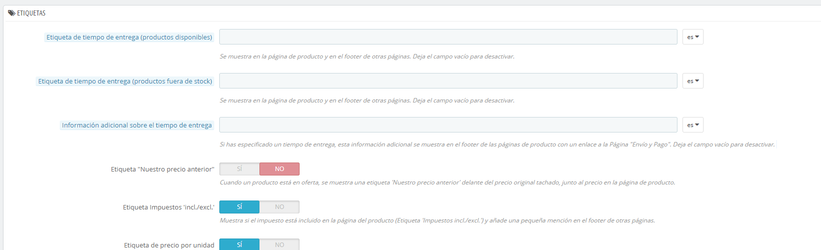 Texto impuestos incluido y plazo de entrega dentro del producto