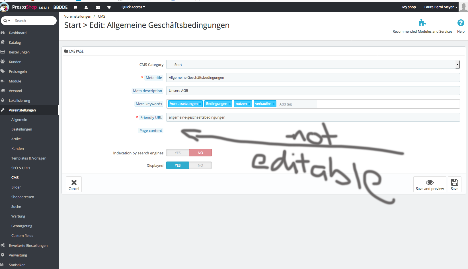 Laura Berni Meyer Posted December 22, 2017 Share Posted December 22, 2017 hi i have installed prestashop 1.6.1.11. Now i wanted to edit the CMS content, but if i go to "edit" the page content field is uneditable. please can someone help me?? thank's a lot. laura Link to comment Share on other sites More sharing options...