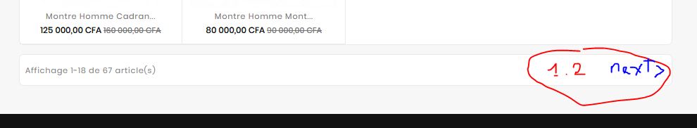 oumarba Posted December 25, 2017 Share Posted December 25, 2017 I have a problem with my product pages, the arrows that navigate on the products page is not displayed. I have more than 100 products in one category, I put 18 products per category on one page, and it must have the numbering and arrows to go on page with the other products but that's the the worry, the numbers are not visible, so we can not go to the next page, 2, 3 and more; i need help aids. ------------------------------------- j'ai un soucis avec mes pages de produits, les flèches qui permettent de naviger sur les page des produits ne s'affiche pas. j'ai plus de 100 produits dans une categorie, j'ai mis 18 produits par categorie sur une page, et il doit avoir les numerotation et des flêches pour aller sur des page comportant les autres produits mais c'est la le soucis, les numerotation ne sont pas visible, du coup on ne peux pas aller sur les page suivant, 2, 3 et plus; j'ai besoin d'aides stp In pj my footer page product Link to comment Share on other sites More sharing options...
