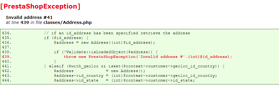 Obviously somewhere there is a reference to that refers to address 41. If it hasn't been defined you can do two things. You can either create one by duplicating another entry in the ps_address table and giving it id 41. Or you can find out what refers to it and make a change there. The most likely referring tables are ps_orders, ps_customer and ps_guest.
