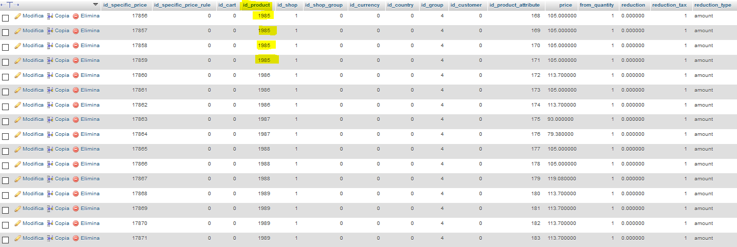 gabrinata98 Posted January 9, 2018 Author Share Posted January 9, 2018 9 hours ago, developer prestashop said: Ciao, puoi inviare uno screen del prezzo specifico caricato e di come viene visualizzato in maniera errata? Ciao, intanto ti ringrazio della risposta, ma PER ORA sembra funzionare il tutto... Ora però ho un altro problema.. quando faccio l'import del mio file csv con i prezzi specifici nel database tramite e-magicOne non riesco a far corrispondere gli Id_prodotti. Allego screen. Grazie mille! Link to comment Share on other sites More sharing options...
