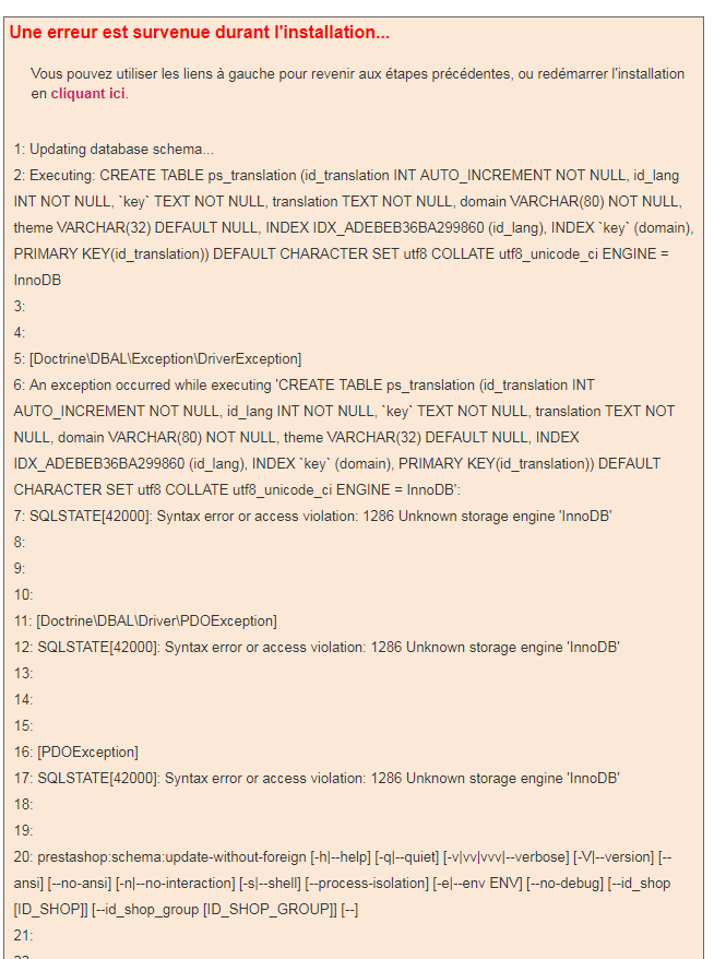 Eolia Posted January 8, 2018 Share Posted January 8, 2018 Quels sont les paramètres de votre serveur SQL ??? Apparemment il ne gère pas le InnoDB Un vieux coucou en MySQLi ? Link to comment Share on other sites More sharing options...