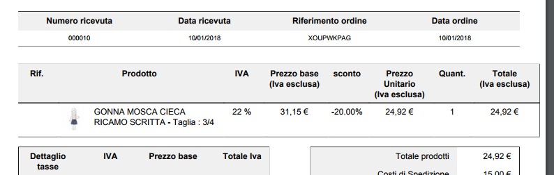 Ti allego il risultato di come viene il corpo fattura, purtroppo esco un po dai margini, lo sistemerò quando troverò dove andare a modificare i valori della larghezza.