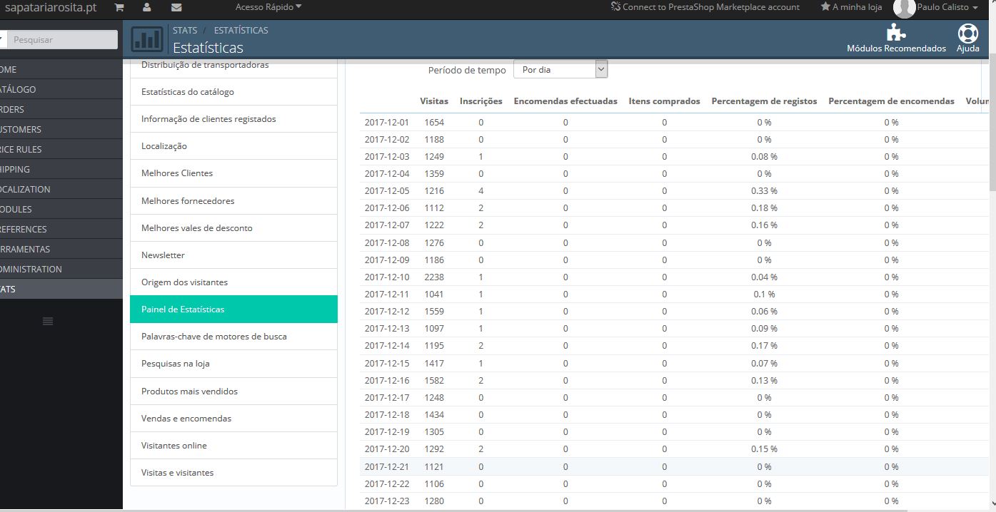 Paulo Calisto Posted January 11, 2018 Share Posted January 11, 2018 Olá! No meu backoffice do prestashop as estatísticas aparecem a zero! Já tentei reiniciar.. Alguém me pode ajudar? A versão é 1.6.0.014 Obrigado. Link to comment Share on other sites More sharing options...