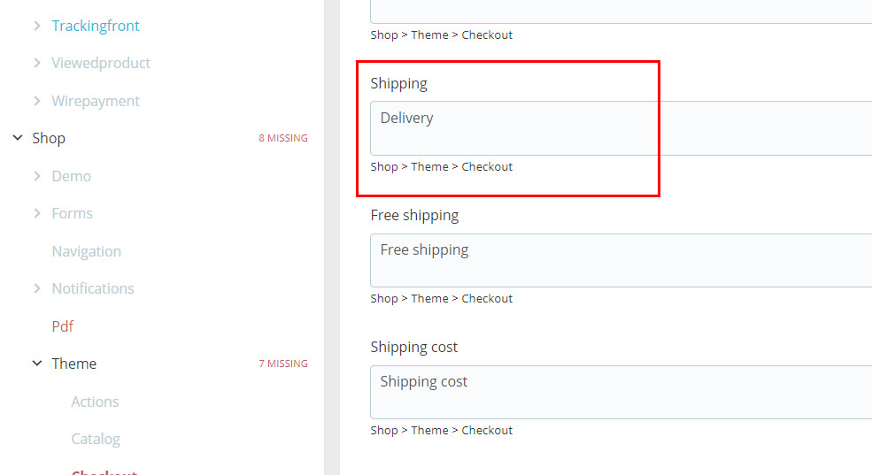 mpha Posted January 14, 2018 Share Posted January 14, 2018 (edited) Hi I am cutomizing prestashop 1.7.2.4 default theme and wanted to replace every page that has the word "shipping" with the word "delivery". Say, replace shipping cost with delivery cost and shipping method with delivery method in checkout as per attachments. tpl files for Prestashop 1.7.2.4 seem to be different from those of 1.6x Edited January 14, 2018 by mpha (see edit history) Link to comment Share on other sites More sharing options...