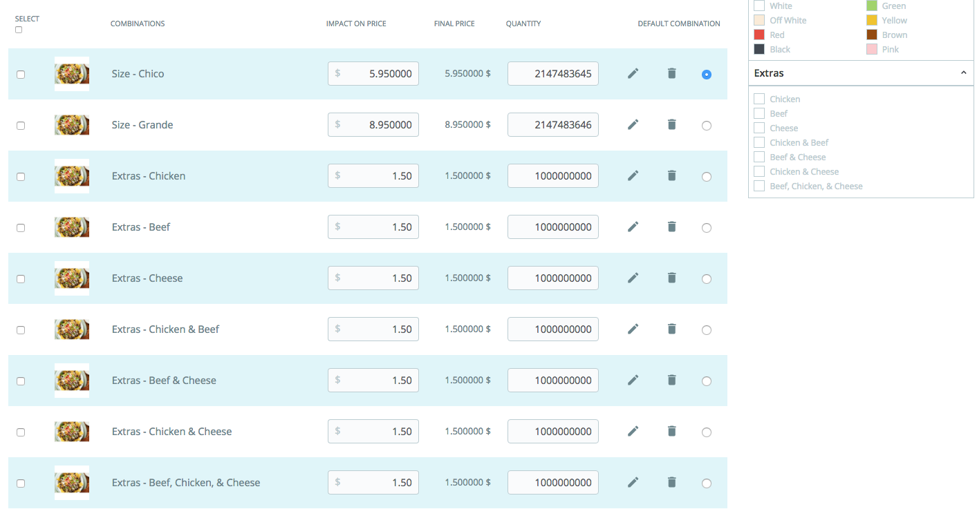 kdmonk1 Posted January 16, 2018 Author Share Posted January 16, 2018 Just found something out, when you move the combination to the top it displays the "Extras" combination. Now the Size combination is blank. Either this is the way it works or something is not coded right. Any thoughts???? Link to comment Share on other sites More sharing options...