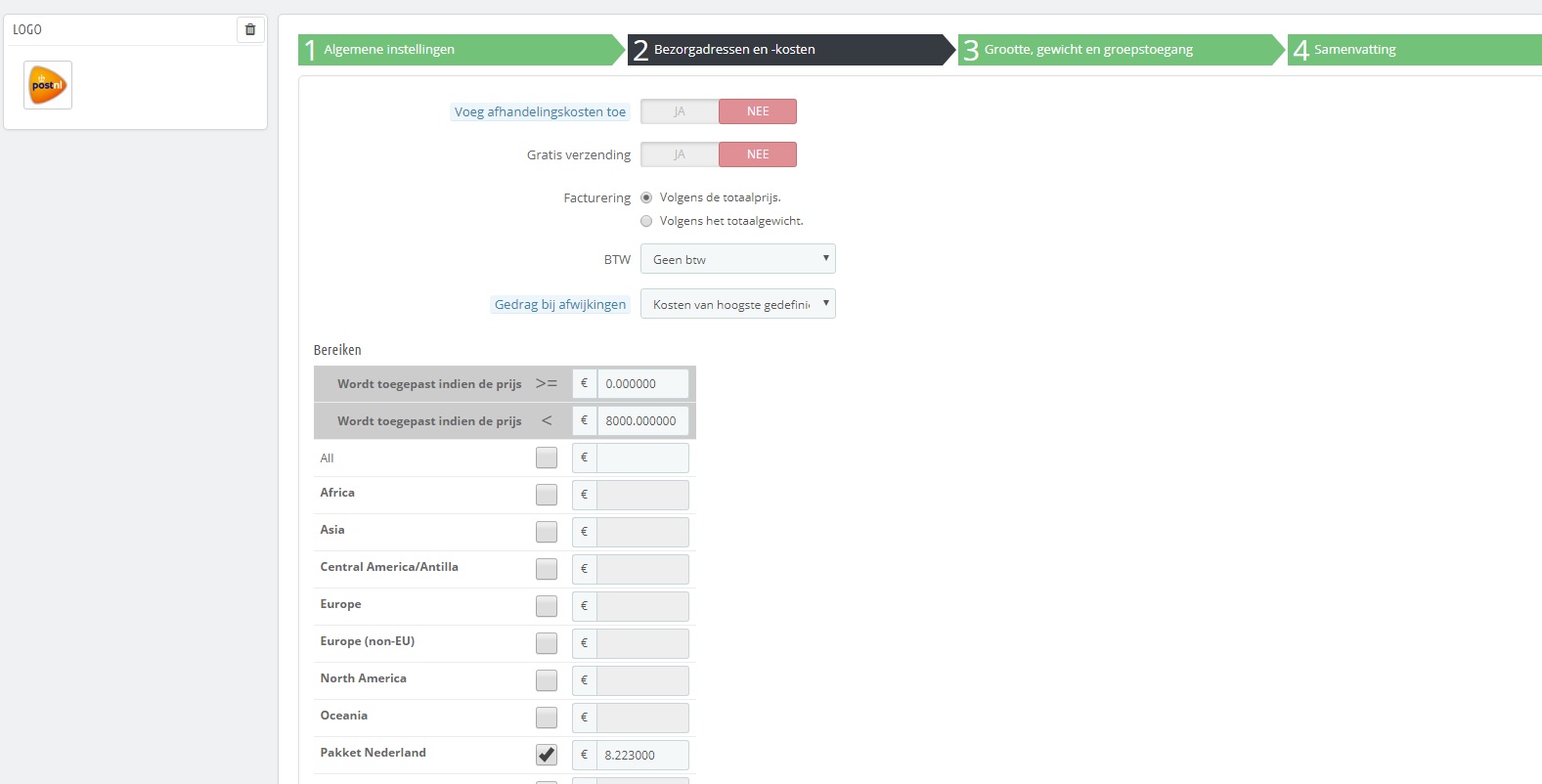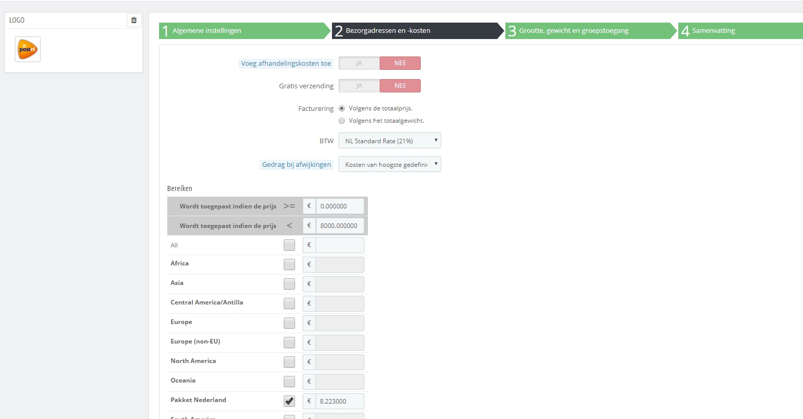 Larsvu Posted January 17, 2018 Author Share Posted January 17, 2018 Ik heb de prijs excl btw ingevoerd. In de vervoerder staat de volgende prijs: 5.743800 En de btw regeling staat op 21% Hierdoor krijg je op de webshop een prijs van 8,41 wat dus niet klopt Link to comment Share on other sites More sharing options...