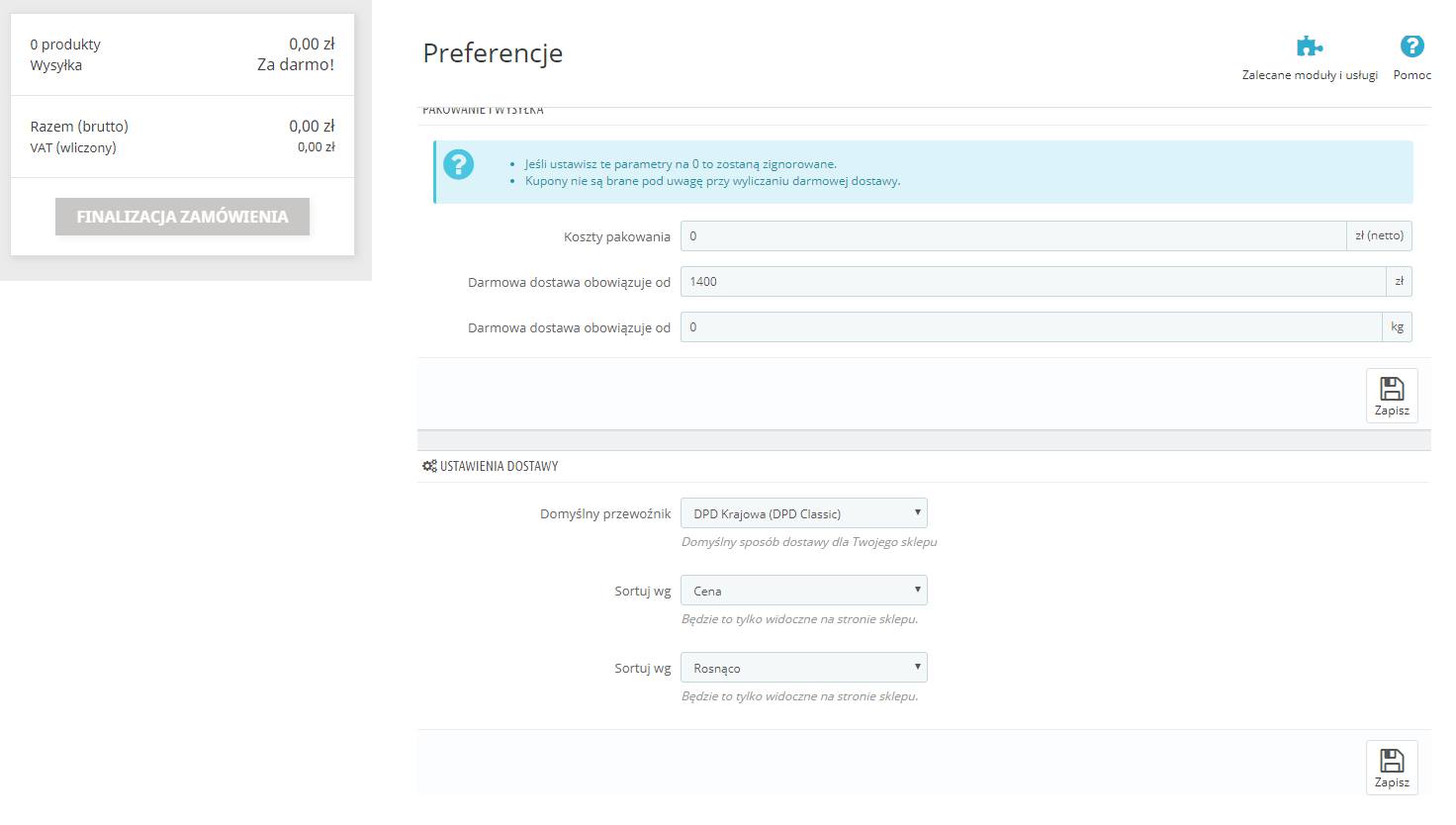 Moduł zmieniający wygląd koszyka i wywalający koszt wysyłki?