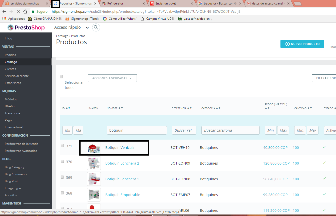 Edwin Posted January 19, 2018 Share Posted January 19, 2018 Hola buen dia. Necesito ayuda desde hace como 3 días mi plataforma de prestashop no me esta permitiendo crear nuevo productos o editar los que tengo, le doy clic para abrir alguno y se queda cargando y después de mucho tiempo se muestra la pagina de 404 pagina no encontrada, no se porque. Con el mismo CMS administro dos tiendas y en la segunda si puedo crear y editar, pero con la primera no puedo. Solicite soporte a los desarrolladores de la plantilla, pero ellos me escribieron que eso era de las funciones predeterminadas de prestashop, pero no se como resolverlo. Me pueden dar alguna indicación de que hacer. Link to comment Share on other sites More sharing options...