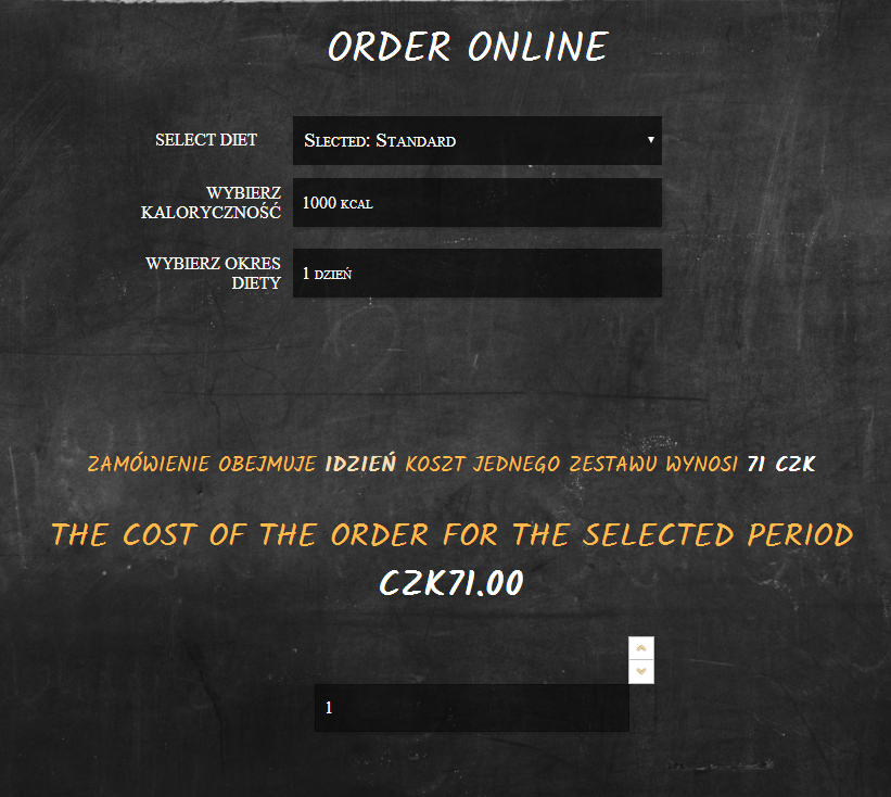 ZAMÓWIENIE OBEJMUJE 1DZIEŃ KOSZ JEDNEGO ZESTAWU WYNOSI 71 CZK.