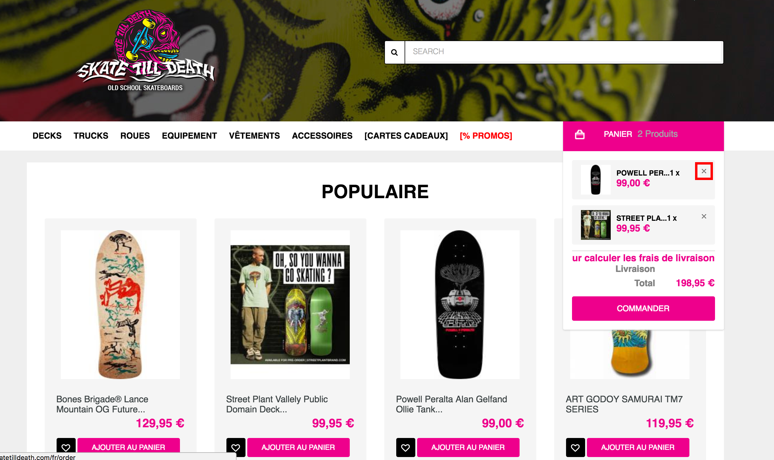 Manoush Posted January 25, 2018 Share Posted January 25, 2018 (edited) Bonjour à tous, Je suis confrontée à un bug sur le site de mon client. Je m'explique, à la base le panier ajax était situé en haut du header, au dessus du formulaire de recherche. Suite à la demande de mon client, j'ai déplacé celui-ci dans la barre du menu. Le panier ajax fonctionne bien à l'ajout d'item. Cependant, lorsqu'on reste dans la page, qu'on ajoute un item, impossible de supprimer celui-ci, alors que si je reload la page, je peux supprimer ces items sans problème. J'ai remarqué que le bouton de remove changeait de place dans le DOM en fonction qu'on reste dans la page ou qu'on reload celle-ci. Quelqu'un aurait-il déjà eu le même problème ? Voici le site concerné : https://www.skatetilldeath.com/fr/ (il y a un bug d'affichage avec la modale d'ajout, fixé en dev pas encore en prod, mais ce n'est pas le sujet) Un grand merci d'avance pour votre aide. Manoush. Edited January 25, 2018 by Manoush (see edit history) Link to comment Share on other sites More sharing options...