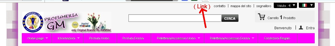 GrandeLupo Posted July 26, 2013 Share Posted July 26, 2013 (edited) scusatemi, purtroppo al momento non riesco a creare un nuovo forum, un nuovo post.. quindi mi accodo alla discussione chiedendoVi se è possibile inserire un collegamento (una scritta con link) proprio in alto? proprio accanto a: contatto | mappa del sito | segnalibro allego un'immagine per spiegarmi meglio Edited July 26, 2013 by profumeriagm (see edit history) Link to comment Share on other sites More sharing options...