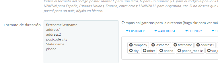 nadie Posted February 5, 2018 Share Posted February 5, 2018 (edited) Según la captura que muestra del error tras habilitar el debug y la que muestras del formato de dirección en el formato de dirección que tienes en la pestaña Internacional -> Ubicaciones Geograficas -> Paises -> Editar País en tu captura no tienes el: Country:name y debes tenerlo. Si lo tienes añadido y el desplegable de paises te sale, pero vacio, comprueba que no tienes los paises desactivados en Internacional -> Ubicaciones geográficas -> Paises Si estan activados y te sale el desplegable sin paises, comprueba desde el navegador con la consola por ejemplo en Chrome (Boton derecho -> Inspeccionar elemento -> Console te salen errores y cuales en caso de que te salgan) Si usas una plantilla distinta a la de por defecto, comprueba si te ocurre lo mismo con la plantilla por defecto. Recuerda que el campo del Pais es obligatorio no puedes quitarlo de la dirección. ------------------------ No es necesario duplicar dudas por el mismo usuario, como te estan respondiendo en el otro tema que tienes abierto, dejo LINK del otro tema aquí: https://www.prestashop.com/forums/topic/662006-error-500-al-registrarse-un-nuevo-cliente/ para seguir conversación por el otro lado donde te he dado la misma respuesta y cierro el actual. Edited February 5, 2018 by nadie (see edit history) Link to comment Share on other sites More sharing options...