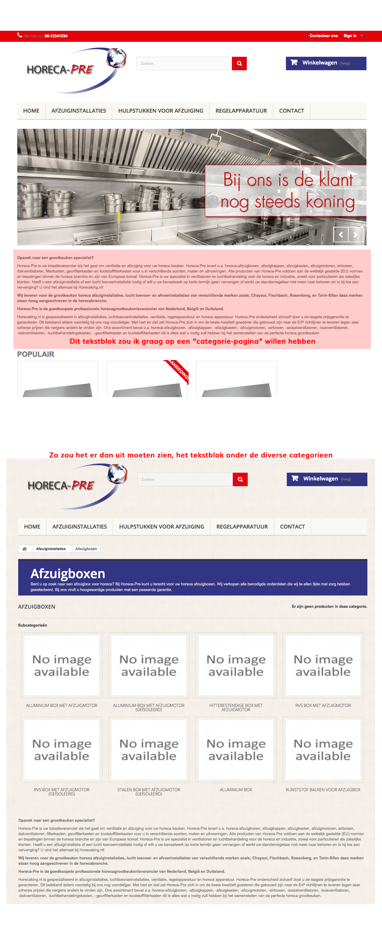 Rob Posted February 8, 2018 Share Posted February 8, 2018 Op de homepage van mijn webshop staat een blok met tekst. Ik zou eenzelfde blok met tekst graag hebben op een "categorie-pagina" onder de afbeeldingen van de diverse categorieen. Is dit mogelijk? Hier staat de website: http://horecanieuw.alanycl261.261.axc.nl/ Link to comment Share on other sites More sharing options...