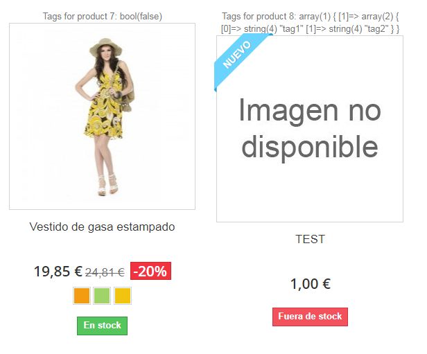joseantgv Posted February 12, 2018 Share Posted February 12, 2018 (edited) On 9/2/2018 at 12:39 PM, Rollaen said: Good day, I would like to display text "Free delivery" in a product-slider.tpl for products that already have Free delivery as a product tag. However I do not want to display all product tags. I tried this {if (isset($product->tags) && $product->tags)} {if in_array('Free delivery', $product->tags.1)} <p>Free delivery</p> {/if} {/if} nevertheless the code only works in product.tpl. I do not know how to display "Free delivery" in the product-slider.tpl file. Any advices are hearty welcome Override function getProductProperties from Product class: public static function getProductProperties($id_lang, $row, Context $context = null) { if (!$row['id_product']) { return false; } $row['tags'] = Tag::getProductTags((int)$row['id_product']); return parent::getProductProperties($id_lang, $row, $context); } Edited February 19, 2018 by joseantgv (see edit history) Link to comment Share on other sites More sharing options...