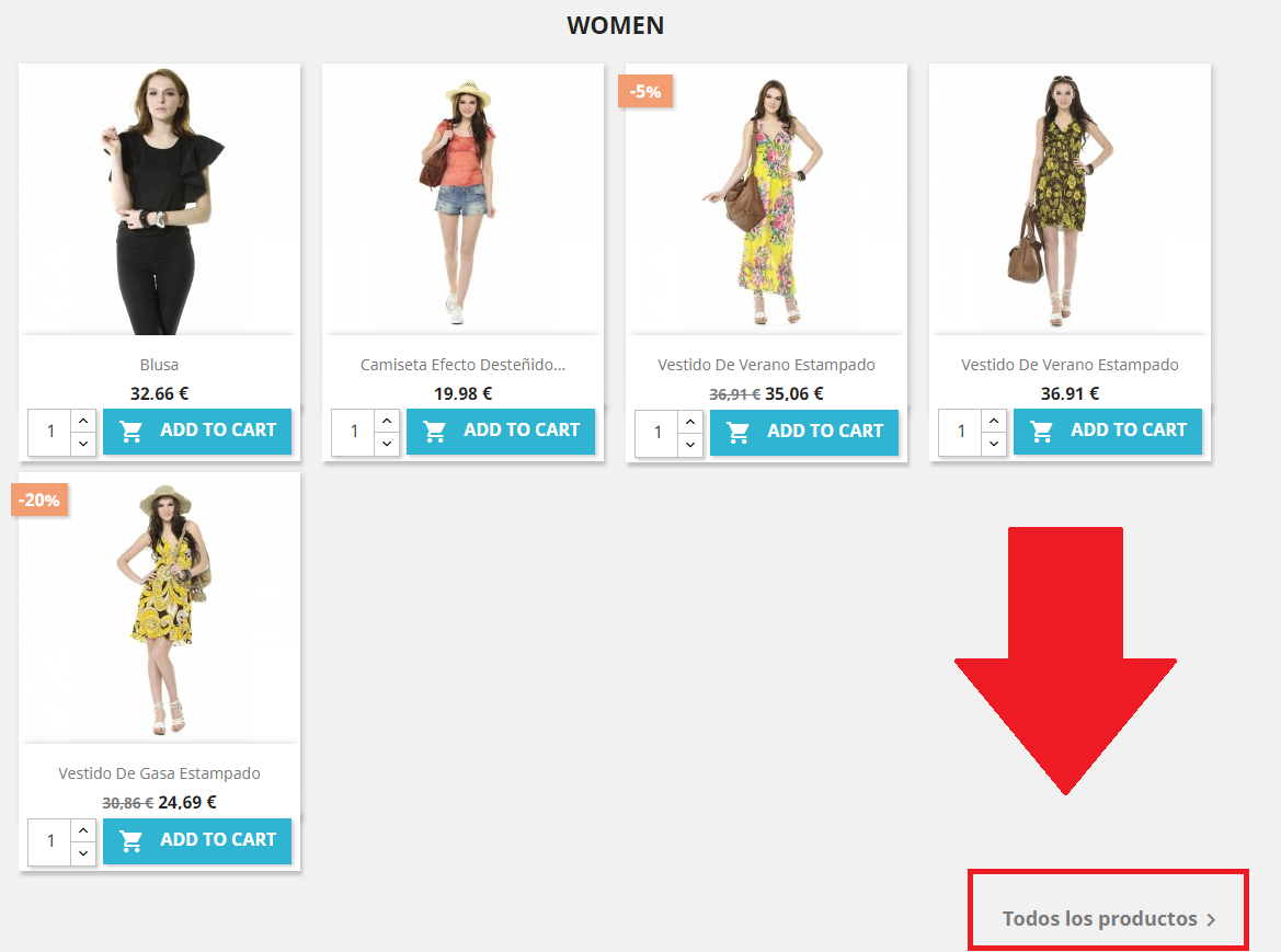 nadie Posted February 11, 2018 Share Posted February 11, 2018 (edited) hace 10 minutos, Paco Valverde dijo: Hola, estoy puliendo detalles de la página http://evobeaute.com.py y me he dado cuenta de que el enlace que hay debajo de los productos en la página principal en vez de llevar a la sección con todos los productos https://evobeaute.com.py/es/12-productos lleva a una página que, debió existir alguna vez pero, desde luego ahora no existe. ¿Dónde debo cambiar ese enlace? Saludos y muchas gracias Si estas usando la plantilla por defecto y todo por defecto, el enlace que te adjunto en la siguiente captura: Ese enlace redirecciona a la categoría que has configurado en el modulo de productos destacados, sino te esta cogiendo el enlace de la categorías que has configurado, limpia la cache de Prestashop en la pestaña Parametros Avanzados -> Rendimientos por si las moscas. Edited February 11, 2018 by nadie (see edit history) 1 Link to comment Share on other sites More sharing options...