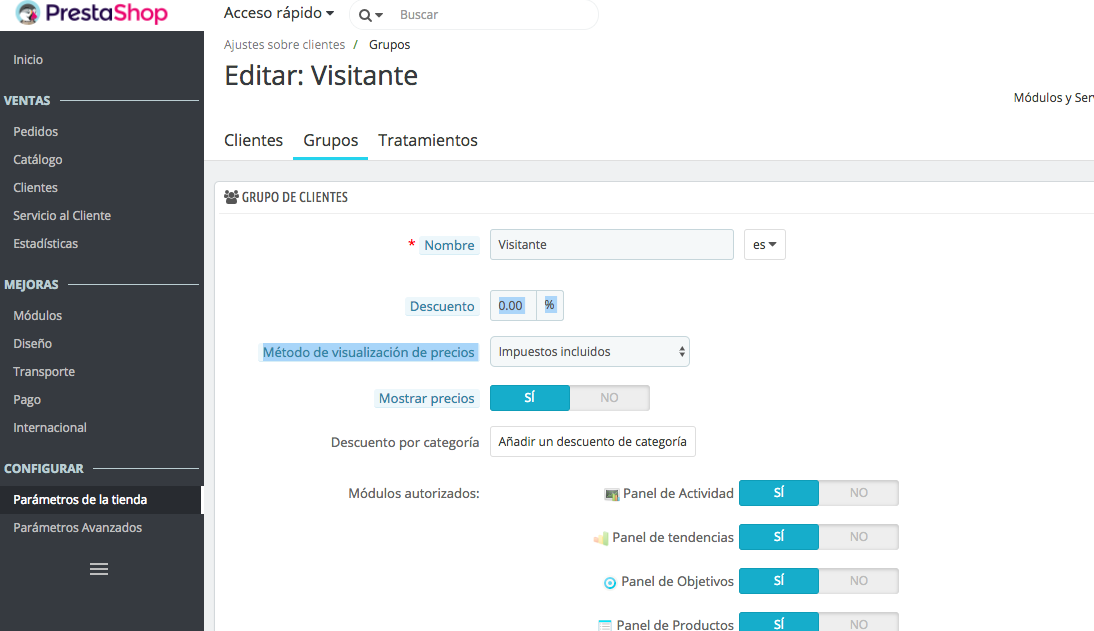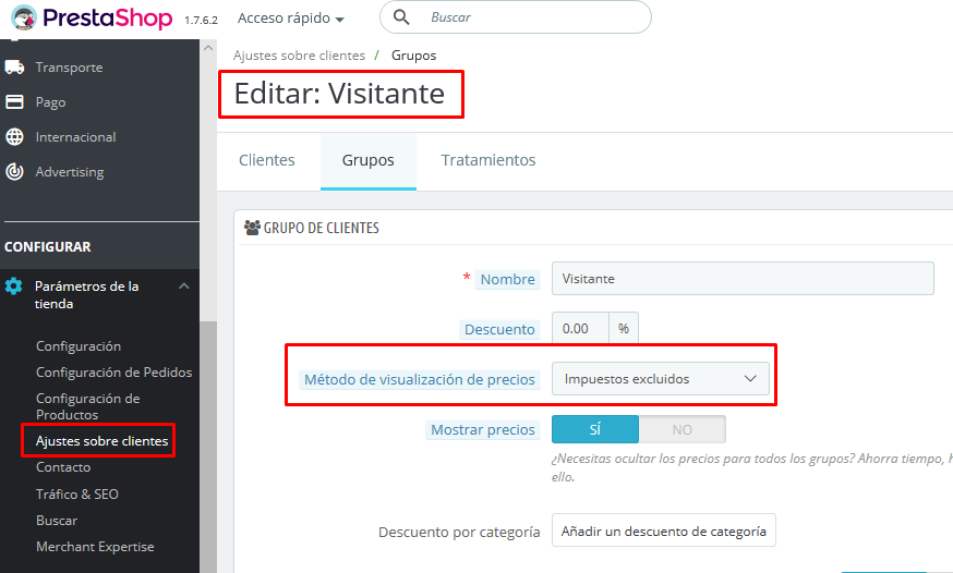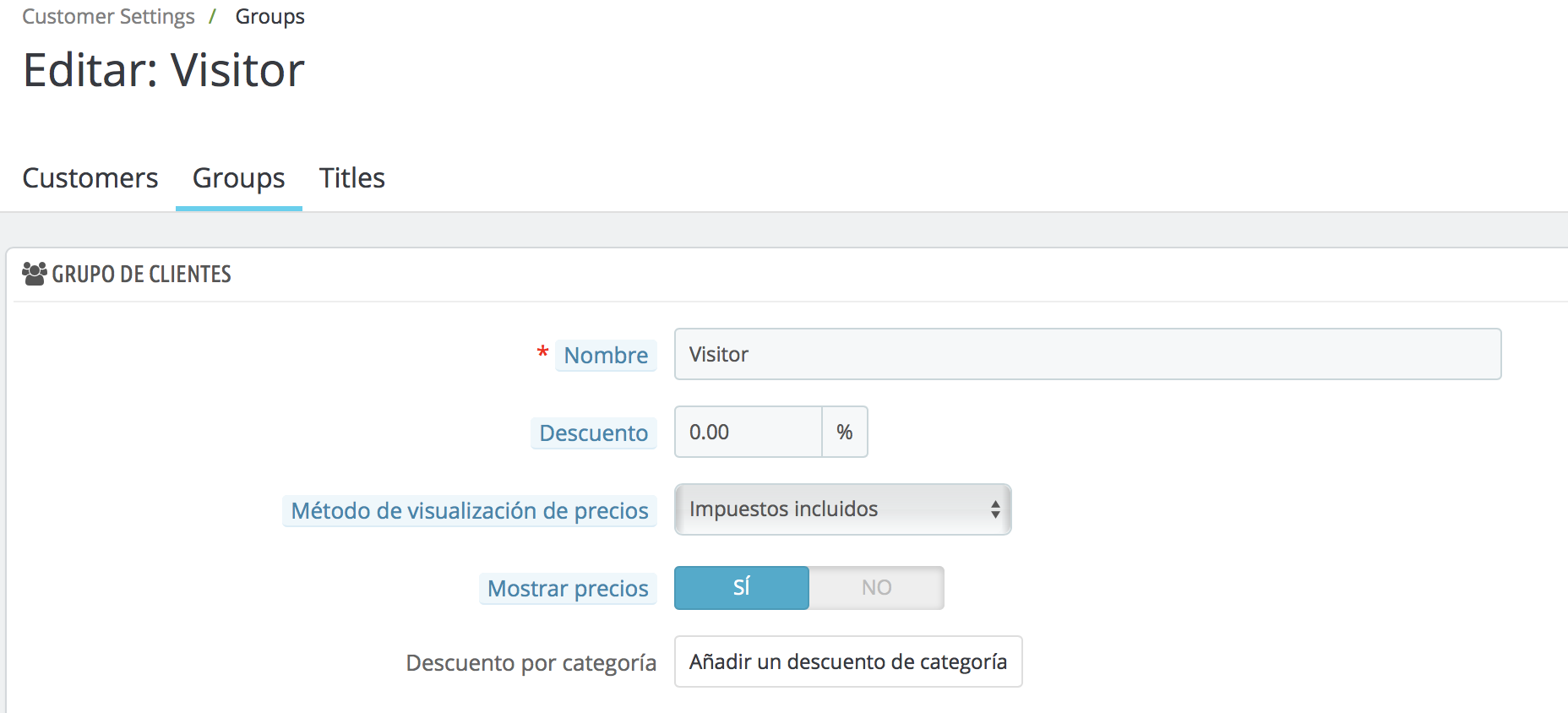 Kraftoys Posted February 16, 2018 Author Share Posted February 16, 2018 Gracias Nadie. Ya había intentado eso pero no resultó. Resolví el problema gracias al equipo de soporte de mi plantilla. Hay que ir a Parámetros de la Tienda> Ajustes sobre Clientes > Grupos y luego editar cada grupo en la casilla "Método de visualización de precios". Gracias por la ayuda. 3 Link to comment Share on other sites More sharing options...