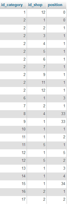 syopaasi Posted February 21, 2018 Share Posted February 21, 2018 Hi I have a problem where product categories are not shown and not selectable from the Horizontal top menu in back end. See attached image categories-missing.jpg. I am using multistore with 10 stores. Shops group is id=2 Problem started after migration from 1.5.x -> 1.6 series. Currently I am using "latest" 1.6.1.18 The problem has been also featured in this post:https://www.prestashop.com/forums/topic/330769-solved-categories-not-visible-in-horizontal-top-menu-backoffice/ I am unable to fix the issue with these instruction so I am hoping that someone could point what to edit in my DB. I have included screenshots from following tables: ps_category, ps_category_group and ps_category_shop Previous version of 1.6.1.8 showed that the HOME -root category I am using is id=2, but root category ID is apparently not visible anymore from the back end on 1.6.1.18. Could anyone help here? Link to comment Share on other sites More sharing options...