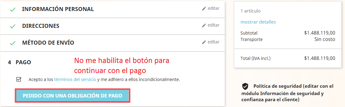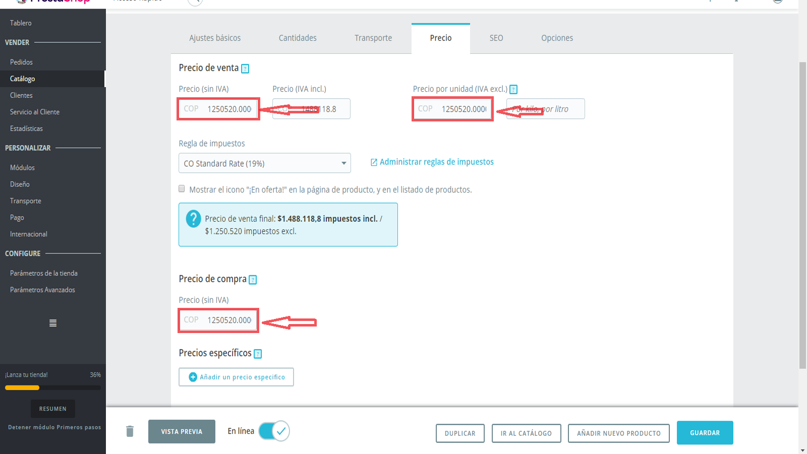 Jeimmy Posted February 21, 2018 Share Posted February 21, 2018 (edited) Buen día, Quiero saber en qué parte puedo modificar los decimales o el tipo de formato como quiero que se muestre la moneda de pesos colombianos, sucede que cuando agrego el precio a un producto me añade lo siguiente, ejemplo: coloco $1'245.520 y me lo deja así: 1245520.00000 en la parte de modificación del producto, y en la página me muestra lo siguiente: $1'245.520,00 y, al momento de realizar la compra no me deja porque no reconoce nada o no sé exactamente, pero no me habilita el botón al momento de aceptar lo términos y condiciones, y así sucede con cualquier valor que haya en la plataforma, como lo es el IVA, descuentos, tasa de cambio etc. Ya intenté cambiar los decimales directamente desde el front-end(administrador) y no hace nada, quisiera saber qué archivo debo modificar del código fuente y qué debo cambiarle exactamente? Estuve mirando el código y encontré una carpeta que se llama Translations > cldr en la cual encontré dos archivos main--es-CO--numbers y main--es-CO--currencies supongo que es alguno de esos, pero no sé cómo debo modificarlo y qué exactamente, en caso de que sean esos los que debo modificar. Adjunto pantallazos con el ejemplo de lo que sucede. Agradezco me puedan colaborar lo más pronto posible. Edited February 21, 2018 by Jeimmy (see edit history) Link to comment Share on other sites More sharing options...