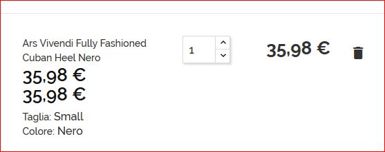 ernesto Posted February 23, 2018 Share Posted February 23, 2018 (edited) Salve a tutti, vorrei chiedervi se è normale che nel carrello mi ripete il prezzo del prodotto molte volte? Allego uno screenshot. edit: Prestashop 1.7.2.4 Tema underwear , ma il problema lo fa anche con quello standard "Classic" Grazie per il support Edited February 23, 2018 by ernesto (see edit history) Link to comment Share on other sites More sharing options...