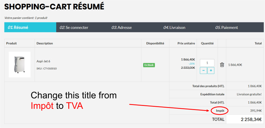 selectshop.at Posted February 24, 2018 Share Posted February 24, 2018 Please add your questions to the English forum section, if you are using English language. You are here in French forum. One of your latest threads I've already moved to English Forum Section. The question you are asking is the same you already added before. You will find this on the translations of your theme in use. http://doc.prestashop.com/display/PS16/Translations http://doc.prestashop.com/display/PS17/Translations Link to comment Share on other sites More sharing options...