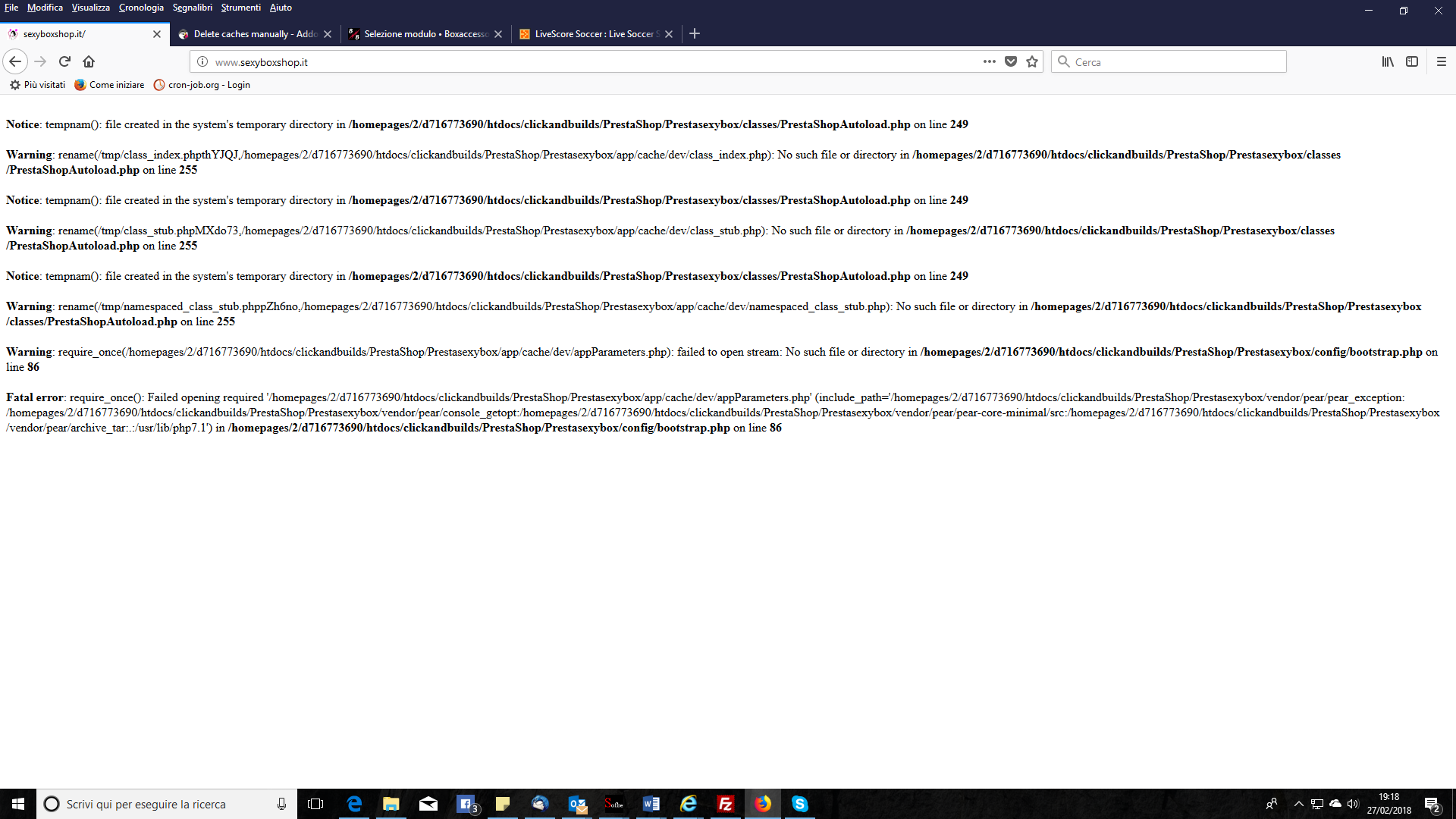 salve a tutti, ieri dopo aver effettuato un import prodotti sul sito prestashop 1.7, con un modulo che aveva sempre funzionato, ma che non usavo da qualche settimana, e il sito era perfettamente funzionante, dopo che ho ricevuto l'ok dell'import da back end, andando sul front e cambiando pagina sul back, ho ricevo pagina bianca senza che compaia niente.... ho abilitato il debug e ricevo questa serie di errori. come da allegato, cosa può essere successo??
