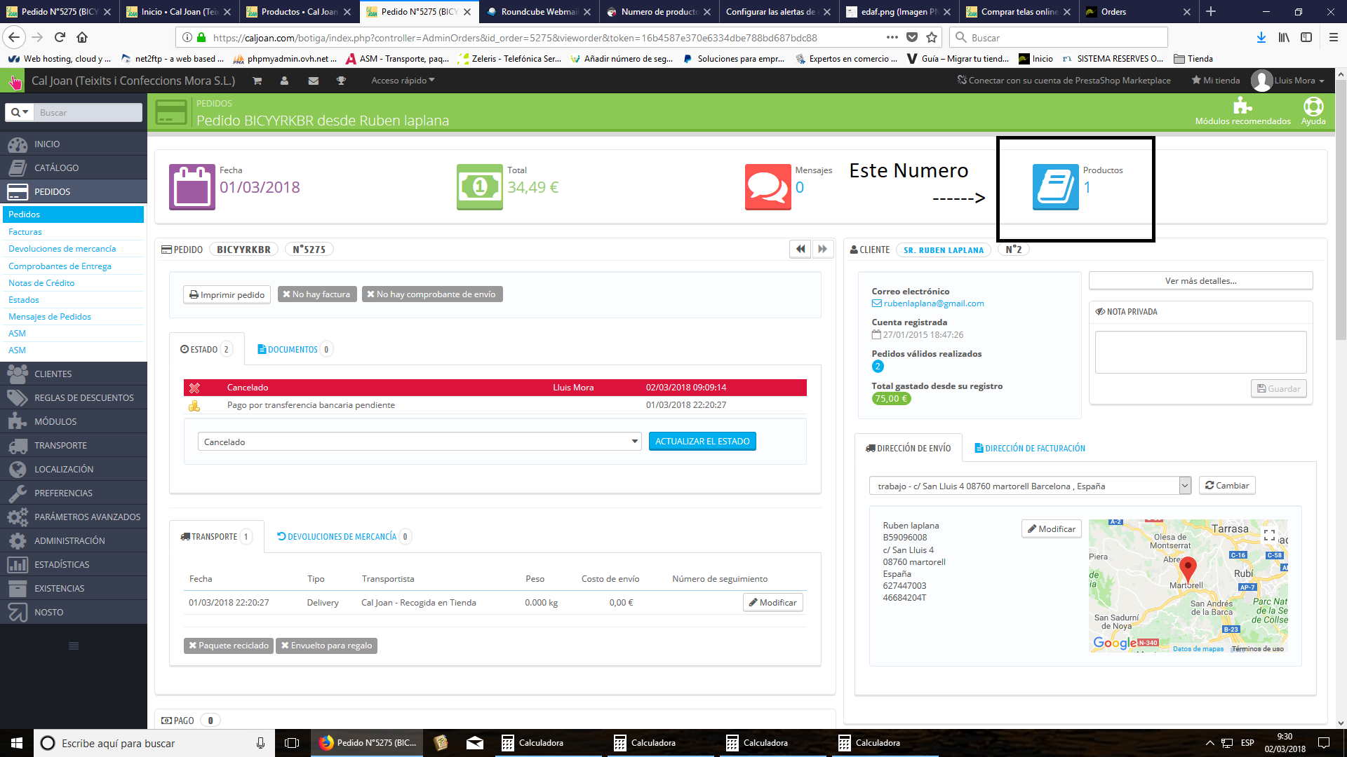 trycster Posted March 2, 2018 Author Share Posted March 2, 2018 Buenos dias, gracias por responder tan rapido. Adjunto un imagen indicando el valor que quiero trasladar, pero es lo que decias de los "10 productos". Aparecen los productos pero me gustaria que saliera el numero total, ya que muchos pedidos los envio a imprimir desde el movil y el pdf que genera el programa de correo los pedidos algunas veces salen cortados al hacer el archivo en varias hojas. Link to comment Share on other sites More sharing options...