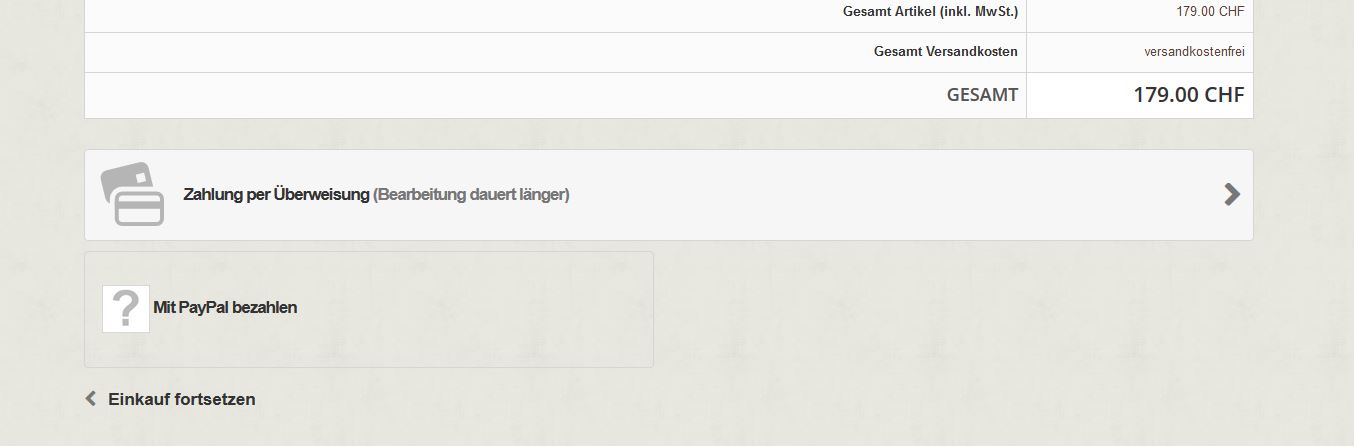 Tropentraum Posted March 17, 2018 Share Posted March 17, 2018 Hallo zusammen Bei mir im Shop habe ich PayPal installiert. Im Bestellprozess beim 5 Schritt wird dies jedoch unmöglich mit Fragezeichen gezeigt, siehe angehängtes File. Weshalb erscheint dies so, ich kann dies selber nicht ändern, dass das Logo PayPal kommt, schöner wäre es noch, dass auch die Kartenlogos eingeblendet würden und dass der Auwahlbalken gleich gross ist, wie bei der Vorauskasse. Was kann ich tun? Link to comment Share on other sites More sharing options...