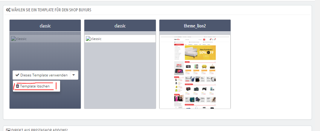 Now, however, I always get the following things after trying to delete the old template, of course, from the system.