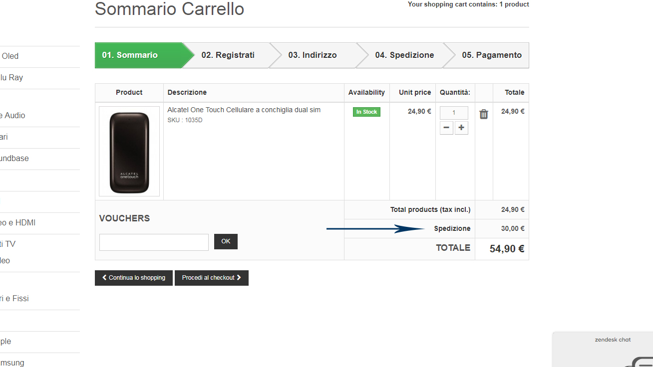 Rimuovere riga spedizione da shoppingcart.tpl