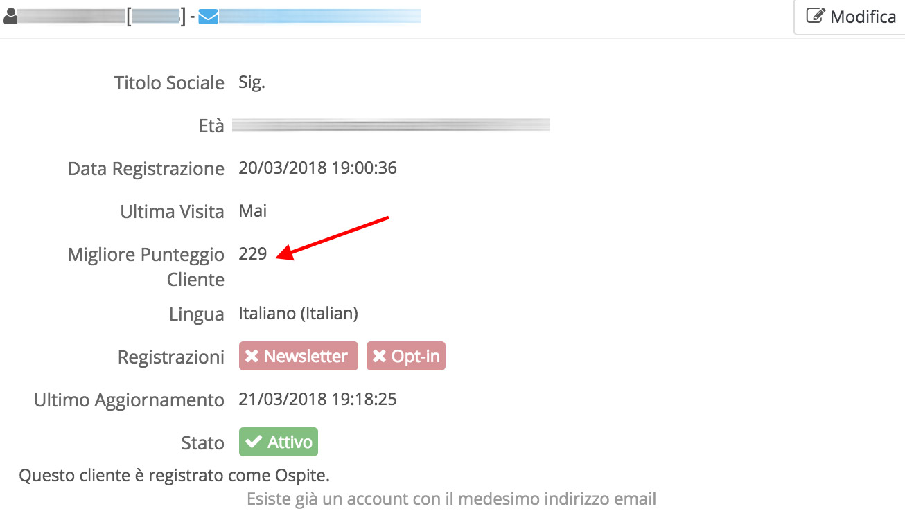 ballashop Posted March 21, 2018 Author Share Posted March 21, 2018 Quando il cliente mi ha detto che non riusciva ad accedere ho pensato fosse un suo problema per questo sono andato a cancellare uno dei due profili che aveva creato. Ho eliminato l'account che non aveva effettuato l'acquisto e tenuto l'altro, dopodiché ho cambiato l'account da ospite da cliente. Però questa operazione non ha risolto il problema, non si riusciva ad accedere da front end, da qui la creazione di un terzo account. in merito alla tabella indirizzi, questo sistema mi mette un pò in confusione. Avrei preferito una gestione scheda cliente completa con indirizzi. Se hai altri suggerimenti te ne sarei grato. Un saluto. Link to comment Share on other sites More sharing options...