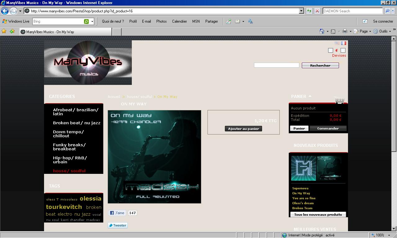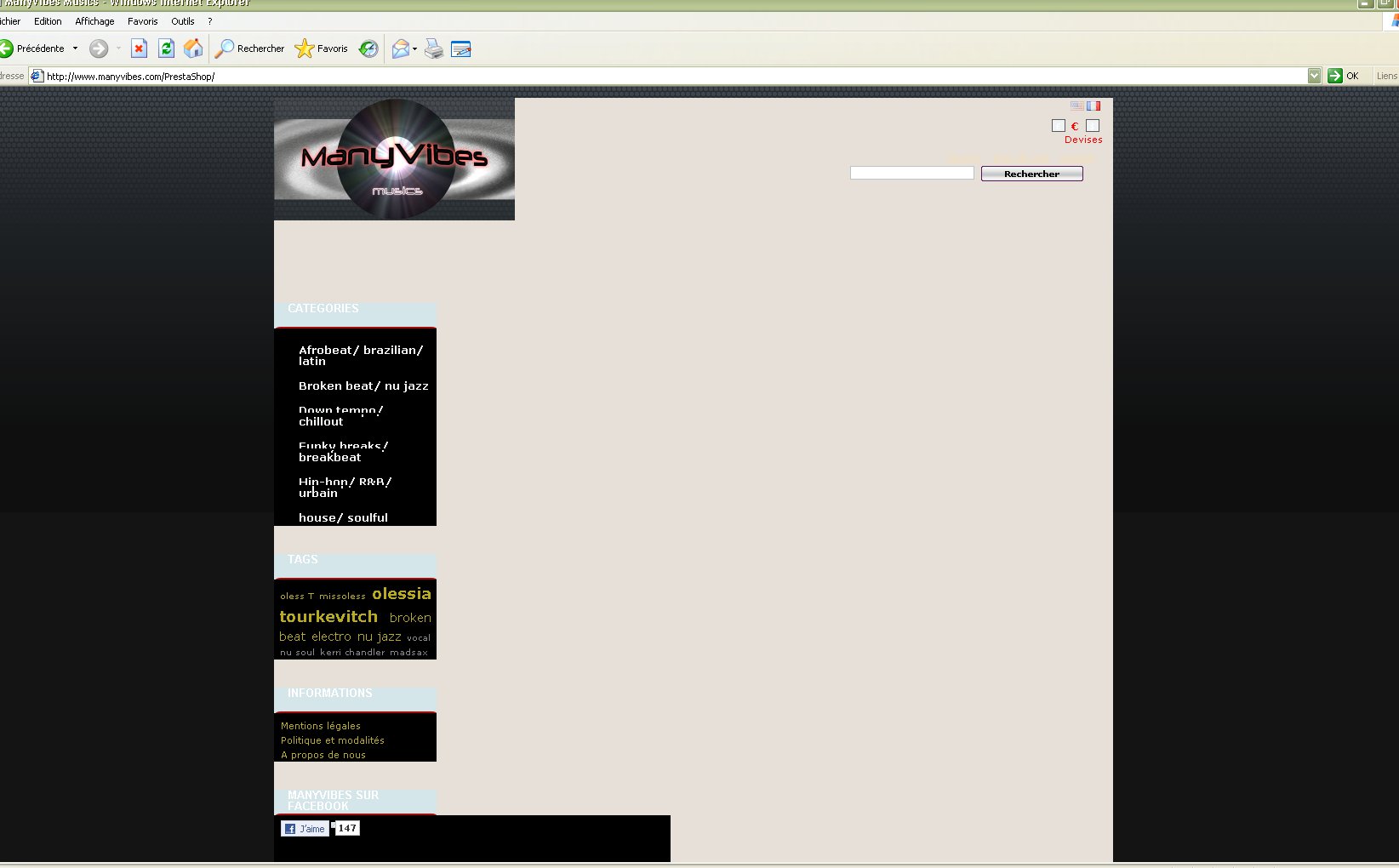 Maintenant, sous IE 7 ça s'affiche plus au moins correct, sauf, les liens du header qui se chevauchent et le block "identifiez-vous a disparu....