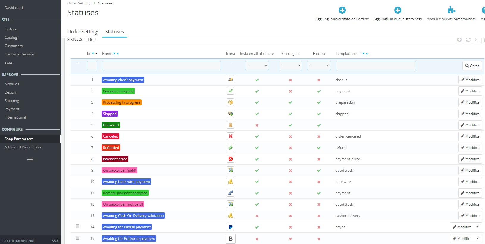 fibo Posted March 26, 2018 Share Posted March 26, 2018 (edited) Ciao! La gestione dei vari stati dell'ordine la trovi nel menù Ordini -> Stati Se vuoi che venga inviata una mail quando l'ordine è in un certo stato, seleziona la casella relativa Edited March 26, 2018 by fibo (see edit history) Link to comment Share on other sites More sharing options...