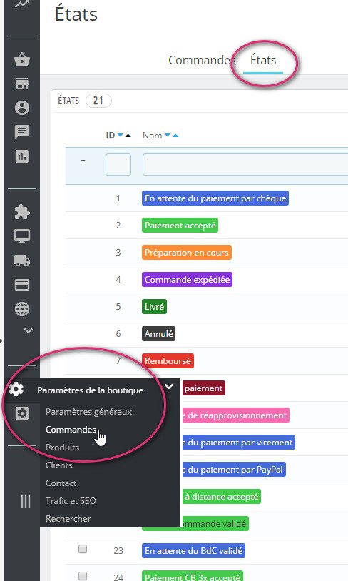 exo7 Posted June 26, 2019 Author Share Posted June 26, 2019 Bonjour Jibax, Pour créer un état il faut aller dans "Paramètres de la boutique / Commandes / Etats" Voir pièce jointe Link to comment Share on other sites More sharing options...