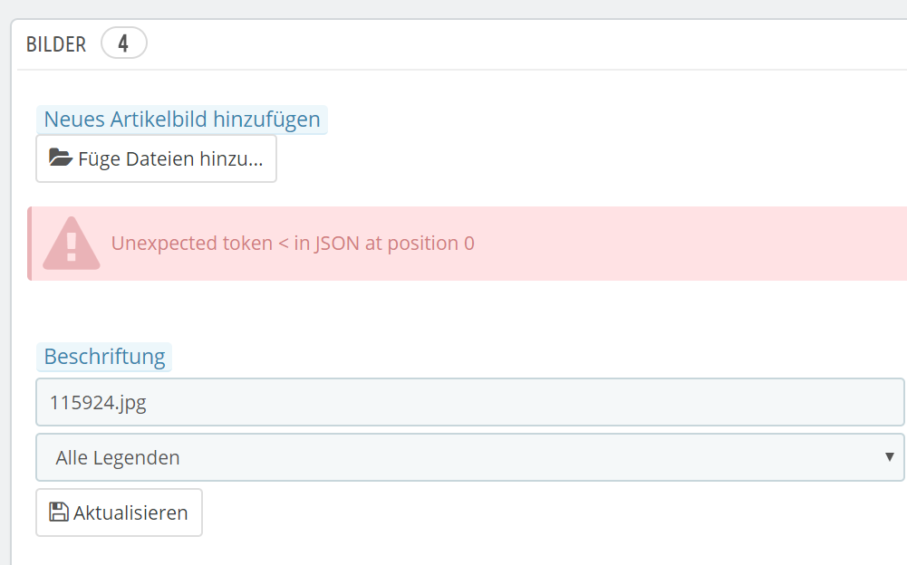 merlin_it Posted March 27, 2018 Share Posted March 27, 2018 Hallo zusammen, in unserem Shop werden teilweise die Bilder nicht mehr hochgeladen. Am Hoster sollte es nicht liegen, er ist ein verifizierter Anbieter. Speicherplatz und sämtliche Limits wurde nicht überschritten. Ich habe in der config die Darstellung der Fehlermeldung aktiviert. Folgender Fehler tritt auf: " Falls es hilft, so sieht der Respone aus: Die Console spuckt eine 404 Error bei GET raus. Bereits getestet habe ich: Berechtigung Cache und TMP. Sämtliche PHP Limitierungen. Alles leider ohne Erfolg. Am Shop wurde die letzte Zeit nichts geändert, dass ist das kuriose. Vlt habt ihr noch ein paar Tipps? Danke. Grüsse Pascal Link to comment Share on other sites More sharing options...