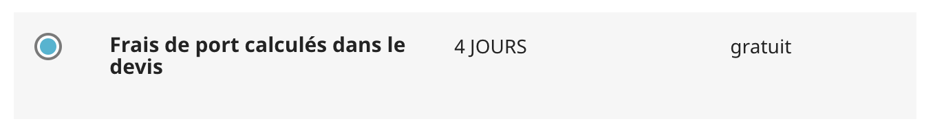 tesshsu Posted April 3, 2018 Author Share Posted April 3, 2018 (edited) i tried to make it by changing the code: florial.com/classes/checkout/DeliveryOptionsFinder.php I add this code if carrier name has this string value= Frais de port calculés dans le devis line 69 private function isDevisShipping(array $carrier) { $devis_shipping = false; if ($carrier['name'] == 'Frais de port calculés dans le devis') { $devis_shipping = true; } return $devis_shipping; } then in the getDeliveryOptions function, I add this condition if is this carrier name, then it should add the translation: devis_shipment instead of Free translation elseif ($this->isDevisShipping($this->context->cart, $carriers_list)) { $carrier['price'] = $this->translator->trans( 'Devis shipment', array(), 'Shop.Theme.Checkout' ); } But after changed the code, I still see no add this translation, could someone had better solution? thank you so much Edited April 3, 2018 by tesshsu (see edit history) Link to comment Share on other sites More sharing options...