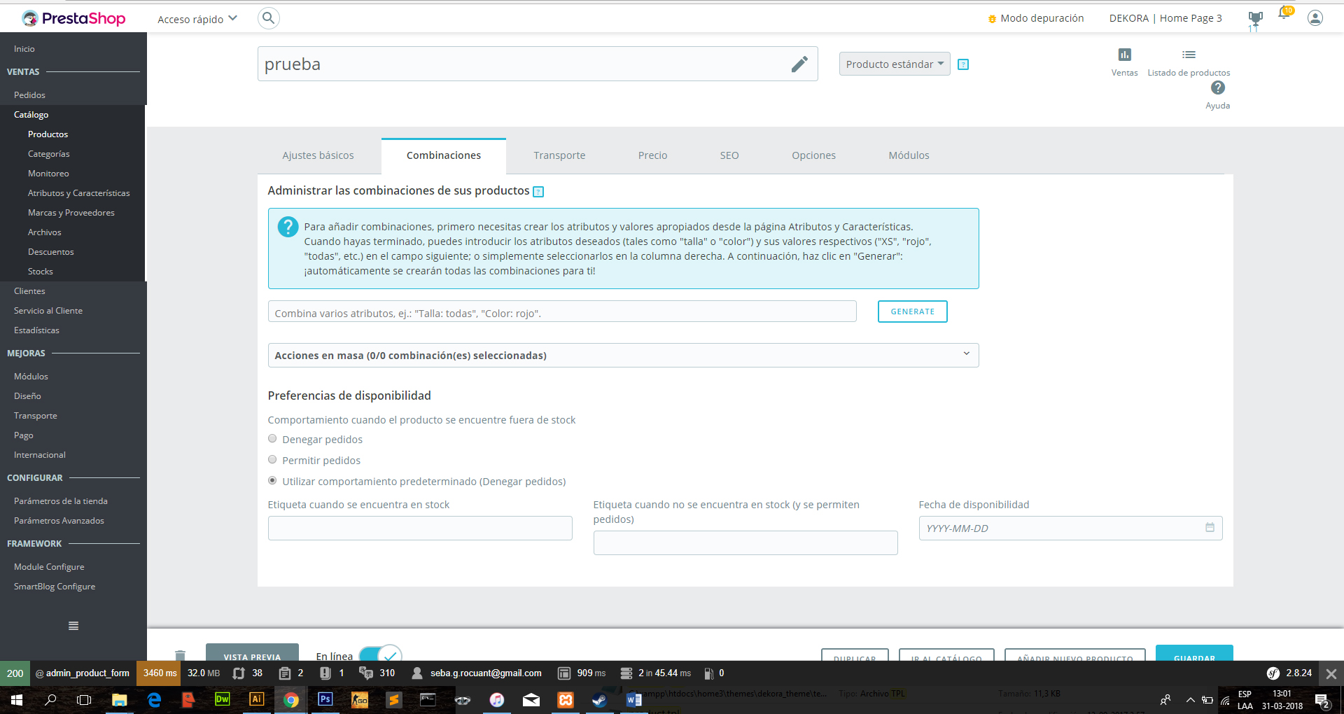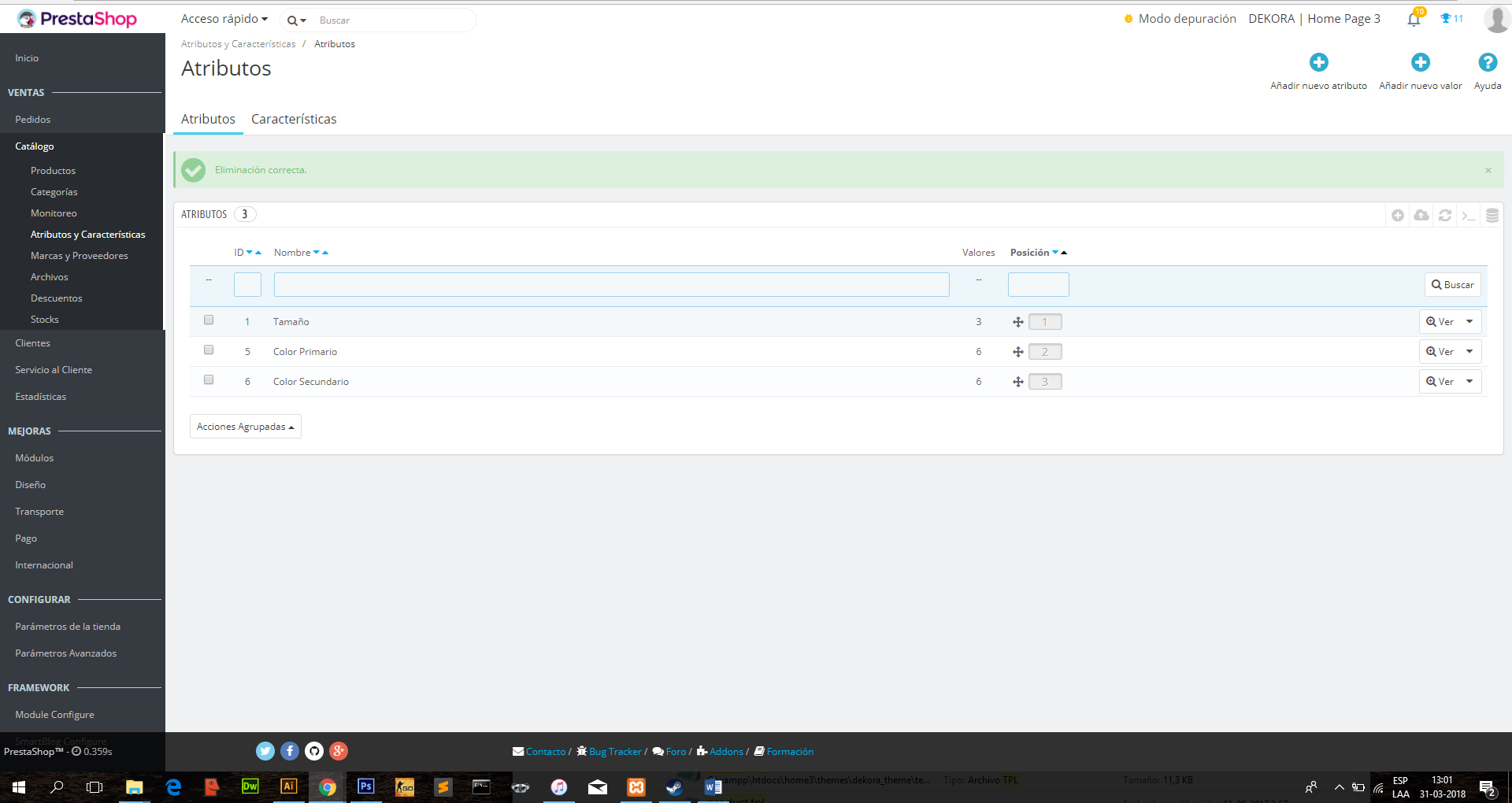 sebastiangr Posted March 31, 2018 Share Posted March 31, 2018 (edited) Estimados Tengo problemas con los atributos, ya que borre los que trae la plantilla y cree unos nuevos para mi tienda, pero al momento de crear un producto y hacer las combinaciones estos no aparecen para seleccionarlos. Adjunto imagenes del problema y ojala me puedan ayudar ya que sin esto no puedo avanzar También estoy trabajando en localhost. saludos que estén bien Edited March 31, 2018 by sebastiangr (see edit history) Link to comment Share on other sites More sharing options...
