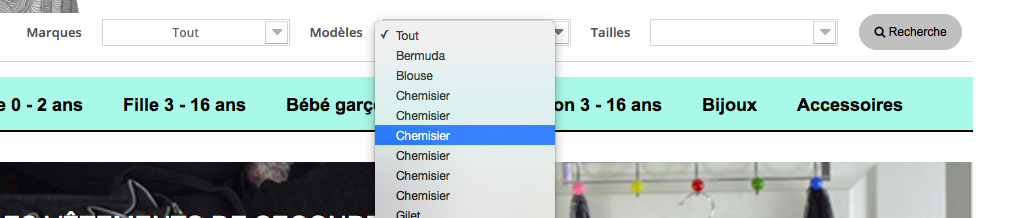 Jess44 Posted April 10, 2018 Share Posted April 10, 2018 Bonjour à tous, j'ai comme l'impression qu'il y a un souci sur ma barre de recherche.Pourquoi le mot chemisier figure plusieurs fois...J'aimerai le voir une seule fois, comme toutes mes désignations pour robe, pantalon...(Voir pièce jointe) + code merci.Model.php Link to comment Share on other sites More sharing options...