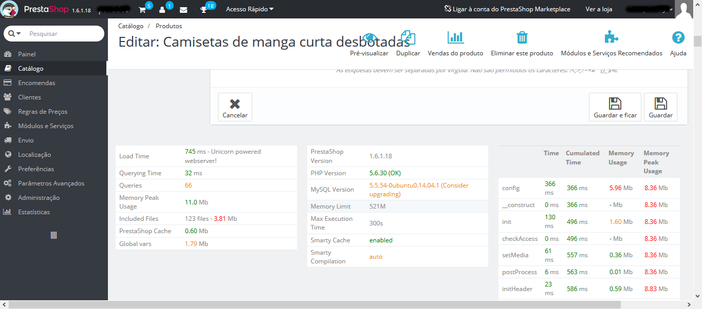 selectshop.at Posted April 10, 2018 Share Posted April 10, 2018 Vc. deveria usar opcache no seu servidor ou entao um módulo php de cache (apc, xcache, memcache). Já conversou com o seu provedor sobre o link que adicionei mais acima quanto à configuracao mínima ? Quais os settings do seu servidor ? O modo debug nao diz nada, nenhum erro em scripts ? https://www.prestashop.com/forums/topic/282165-ativar-modo-debug/ Verifique também os logs de erro do servidor. Se nao tiver acesso, entao contate o seu provedor. O problema está somente no back-office, ou é geral ? Qual a URL da sua página para podermos visualizar o problema. Link to comment Share on other sites More sharing options...