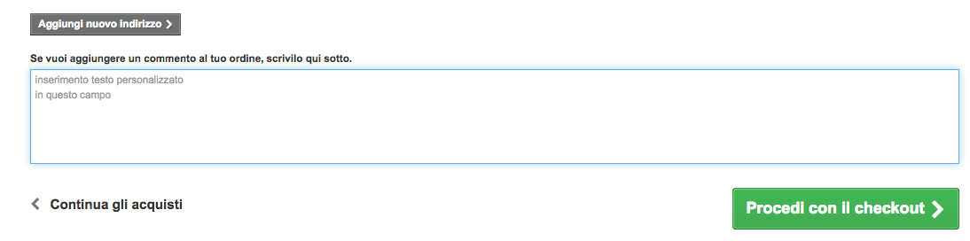 cafucchia Posted April 11, 2018 Share Posted April 11, 2018 Buonasera, vorrei fare in modo che il campo "Se vuoi aggiungere un commento al tuo ordine, scrivilo qui sotto." presente in fase di inserimento ordine venga precompilato con il contenuto di un campo di un'altra tabella e possibilmente non scrivibile. In questo modo riuscirei a portarmi questa informazione nell'ordine. Come posso fare? ho prestashop 1.6.1.17 Link to comment Share on other sites More sharing options...