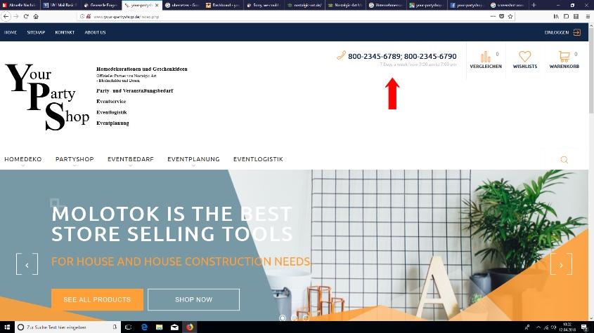 DRMasterChief Posted April 12, 2018 Share Posted April 12, 2018 Die Tel.nr. stammt aus dem Modul Kontakt-Block für weitere Infos (z.B. Icon ändern) siehe hier https://www.prestashop.com/forums/topic/634994-icons-ändern/ Link to comment Share on other sites More sharing options...