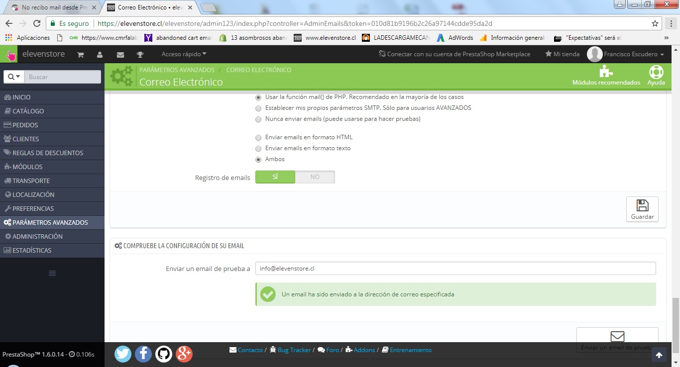 elevenstore Posted April 15, 2018 Author Share Posted April 15, 2018 hola te envio pantallazo de sistema, no muestra error el ptoblema es que los correos no llegan a destino. Solo pasa con lo que sale de prestashop, el mail recibe correos externos, no de sistema de prestashop. Que puede esatr sucediendo. Saludos Link to comment Share on other sites More sharing options...