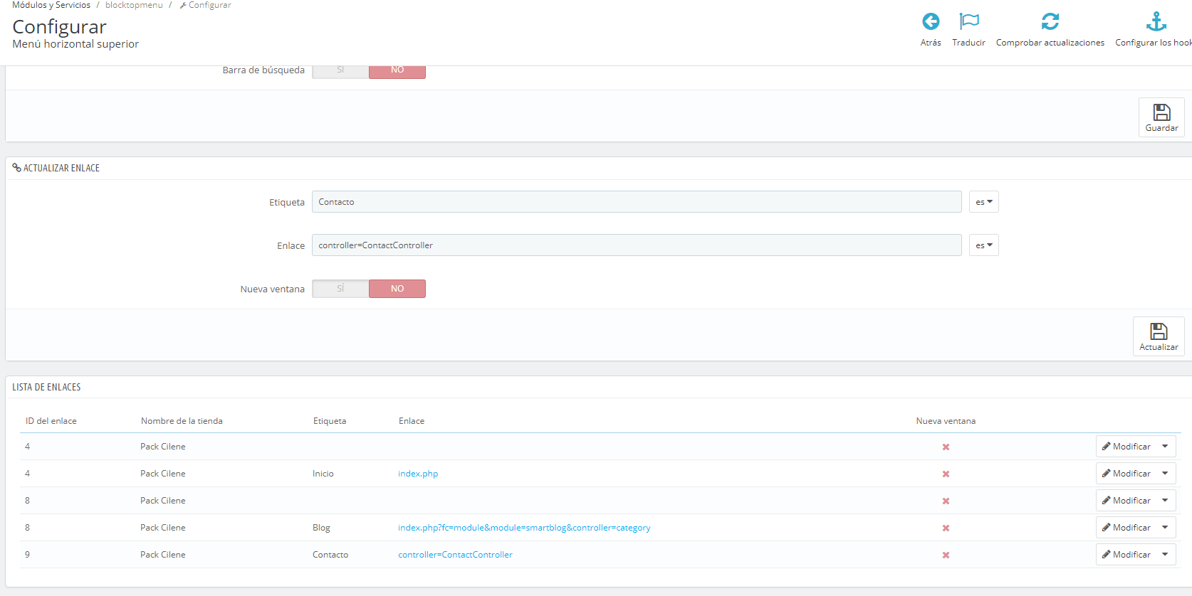 nadie Posted April 16, 2018 Share Posted April 16, 2018 En 14/4/2018 a las 1:38 PM, topewebmaster dijo: Buenas tardes, Mi consulta es referente a la web: shogunarmory.es terminando la web para un cliente me he dado cuenta que el link del menú superior "Contacto" me llevaba a una página en blanco con error 505, después de días googleando y sin dar con solución decidí investigar un poco hasta que he borrado sin querer el enlace a la página del formulario. Ahora no se qué poner, no recuerdo la ruta por defecto. Alguien me puede echar un cable o decirme qué ruta le sale por defecto? Adjunto captura. Gracias de antemano!!!!! Tienes la tienda desactivada y no puedo ver el problema. Pero si al acceder al formulario de contacto: tuweb.com/index.php?controller=contact o tuweb.com/contactanos (suponiendo que esa sea la URL amigable del formulario de contacto que tienes configurada en la pestaña Preferencias -> SEO y URL (en la 1.7 Parametros Avanzados -> Trafico & SEO y URL) para el formulario de contacto y te pega un error 500 o similar, habilita el debug: https://www.prestashop.com/forums/topic/232476-¿qué-hacer-cuando-se-queda-la-pantalla-en-blanco-en-prestashop/ para ver si es posible obtener mas información del error. Link to comment Share on other sites More sharing options...