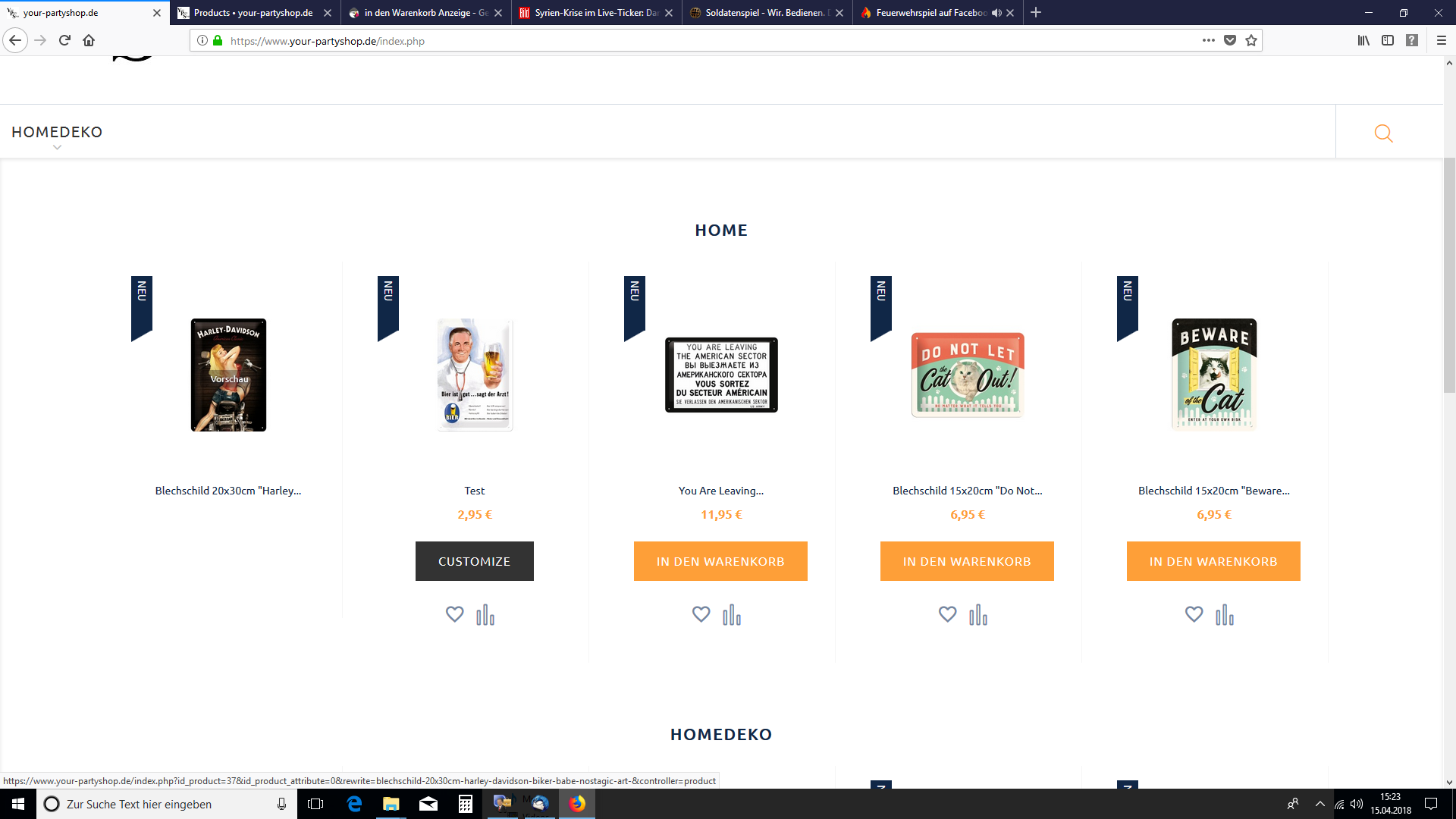 your-partyshop Posted April 15, 2018 Author Share Posted April 15, 2018 so einen kleinen Schritt weiter... Hab jetzt mal versucht, einen Artikel zu copieren... Nun erscheint wieder der Preis, allerdings steht nun: customize auf dem Button statt in den Warenkorb. Ich hoffe Ihr könnt damit jetzt eher etwas anfangen... Link to comment Share on other sites More sharing options...