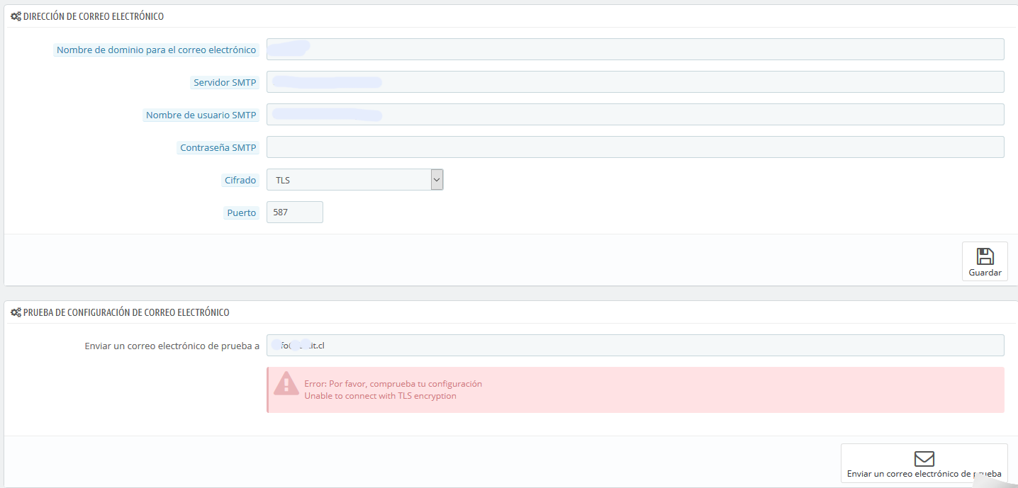 iliamcarrion Posted April 23, 2018 Share Posted April 23, 2018 Hola, soy nuevo en esto de prestashop, necesito de su ayuda para poder solucionar un problema que tengo. Cree un sitio nuevo en prestashop 1.7, cuando configuro la zona de dirección email lo realizo por " Establecer mis propios parámetros SMTP (SÓLO para usuarios avanzados) " coloco todos los datos y me arroja el siguiente error a la hora de " Enviar un correo electrónico de prueba a". Error: Por favor, comprueba tu configuración Unable to connect with TLS encryption adjunto imagen Link to comment Share on other sites More sharing options...