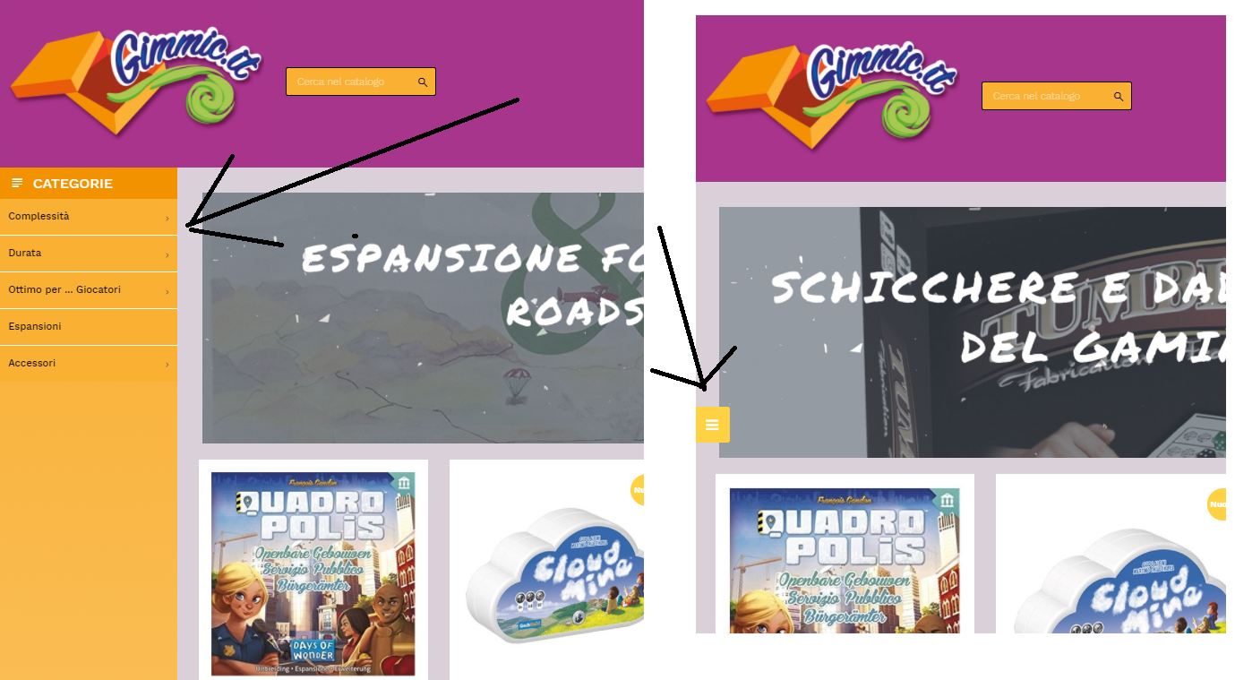 hyggli Posted April 24, 2018 Share Posted April 24, 2018 Ciao a tutti, ho due problemi con una vertical bar . Ho provato a spaciugare un pò in theme.css ma non ho trovato i settaggi a riguardo, sicuramente sono babbo io, dovrebbero essere poche modifiche di codice. Avrei necessità di: 1.Nella homepage per i pc mantenere fissa la sidebar, mentre mantenerla "nascondibile" sugli altri device 2.Dovrei eliminare un pezzo della barra laterale dalle pagine di ricerca delle categorie (per intenderci quando clicco sulle categorie della sidebar di cui sopra, mi va qui Dovrei allineare la parte arancione con il menu laterale mantenendolo sempre fisso nei large e farla sparire nei tablet/cellulari Grazie in anticipo a chiunque si scartavetrerà per una domanda cosi stupida ^^'' Link to comment Share on other sites More sharing options...