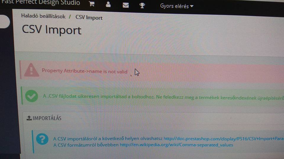 FeroMon Posted April 25, 2018 Share Posted April 25, 2018 (edited) Dear Friends, Please help me. I've created a CSV import file from combinations. I wanted to upload but I get the following error message: Property Attribute: ->Name is not Valid. What could be the problem?! Combinations.csv Edited April 25, 2018 by FeroMon (see edit history) Link to comment Share on other sites More sharing options...
